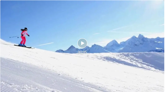 女孩身着滑雪装备,在阿尔卑斯山的雪坡上滑行。她灵活地控制着滑雪板,时而加速,时而转弯,高速运动下甩起的马尾辫、卷起的积雪让镜头更加逼真。