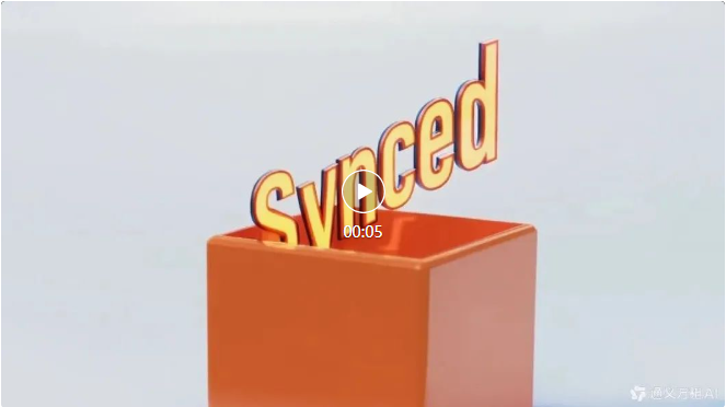 再比如从一个橘色的正方体小盒子里跳出英文单词「Synced」。