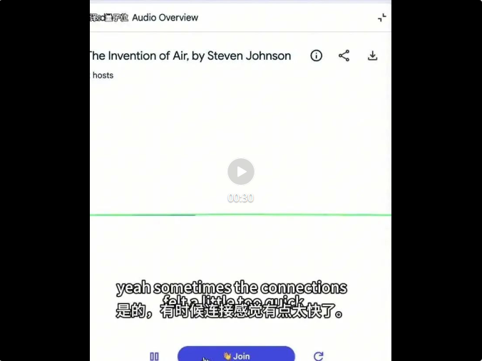 现在,你不仅可以从各种资料中实时生成播客,而且你还可以点击加入按钮,随时来一场在线小组讨论。